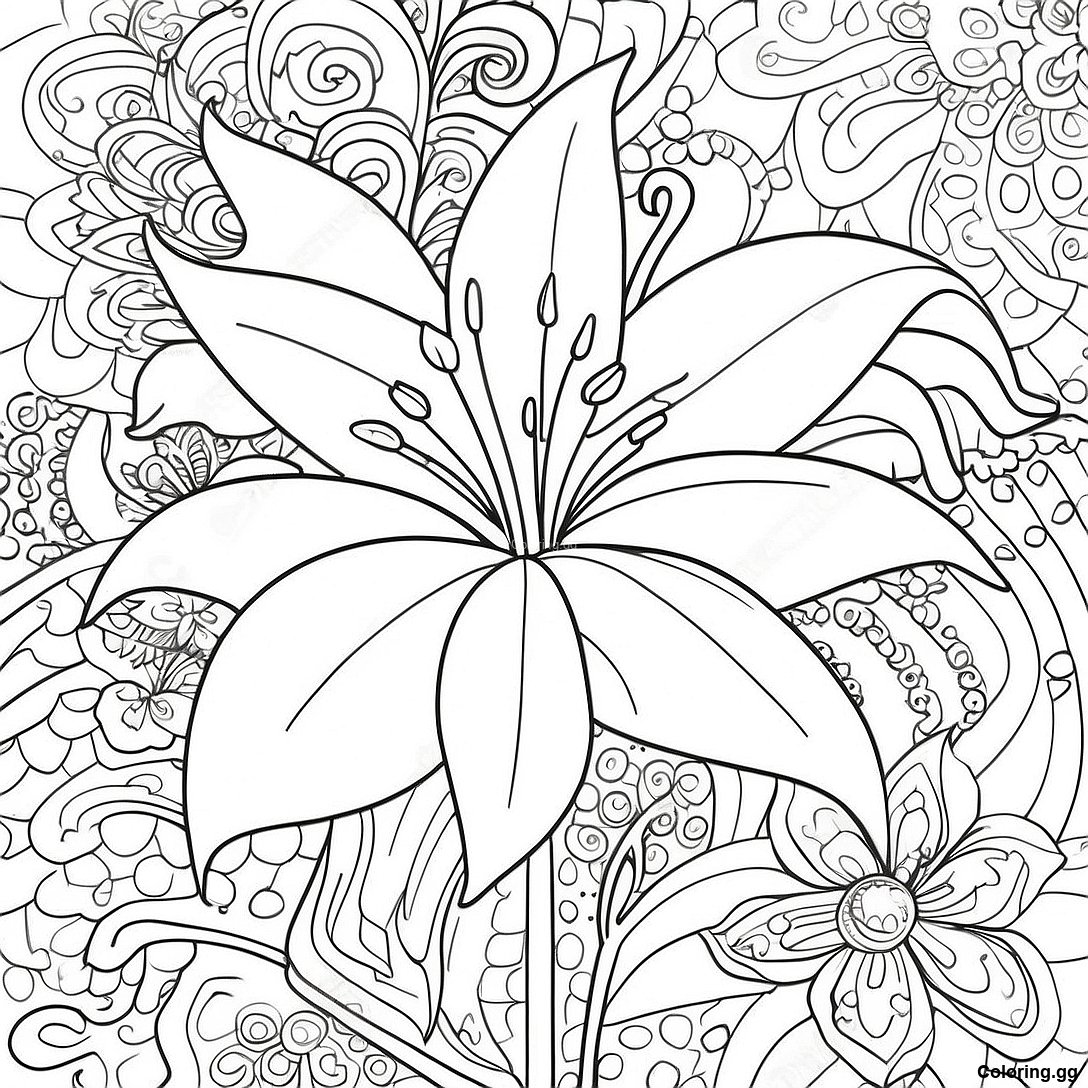 অদ্ভুত লিলি ফুল রঙ করার পাতা এর মুদ্রণযোগ্য পিডিএফ ডাউনলোড করুন