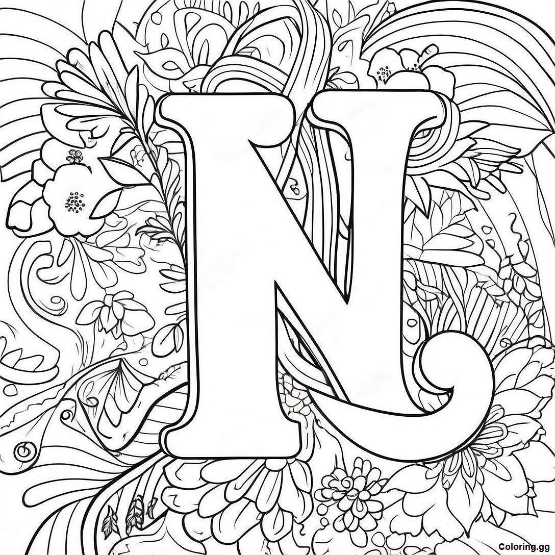 অক্ষর এন রঙ করার পাতা এর মুদ্রণযোগ্য পিডিএফ ডাউনলোড করুন