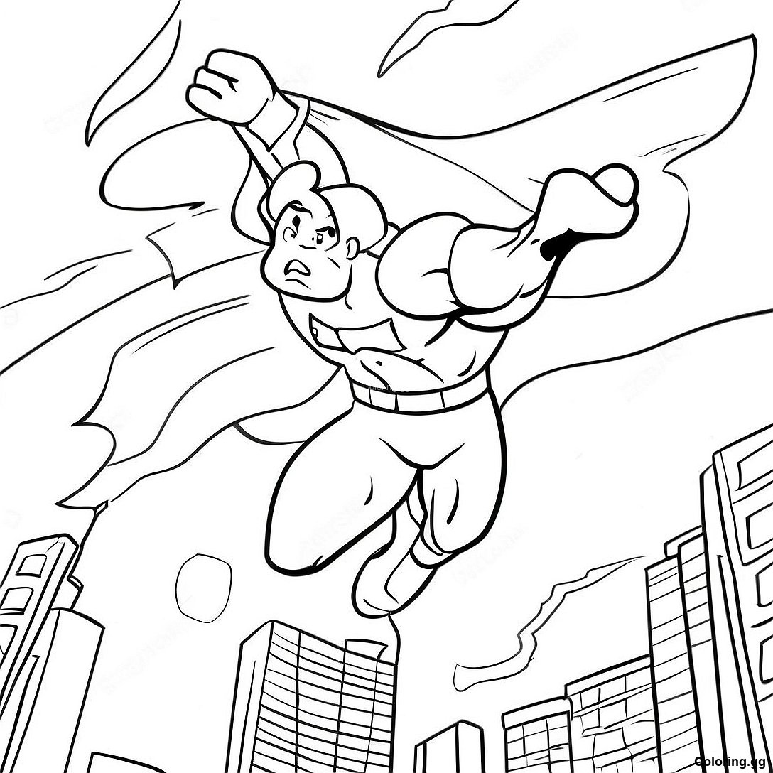 শক্তিশালী সুপারহিরো আকাশে উড়ছে রঙ করার পাতা
