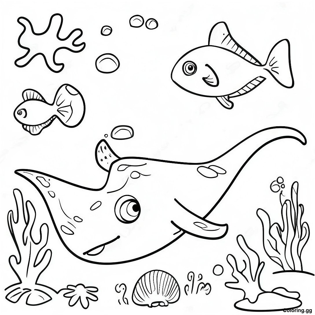 বাস্তবসম্মত স্টিংরে প্রবাল প্রাচীরের সাথে রঙ করার পাতা এর মুদ্রণযোগ্য পিডিএফ ডাউনলোড করুন