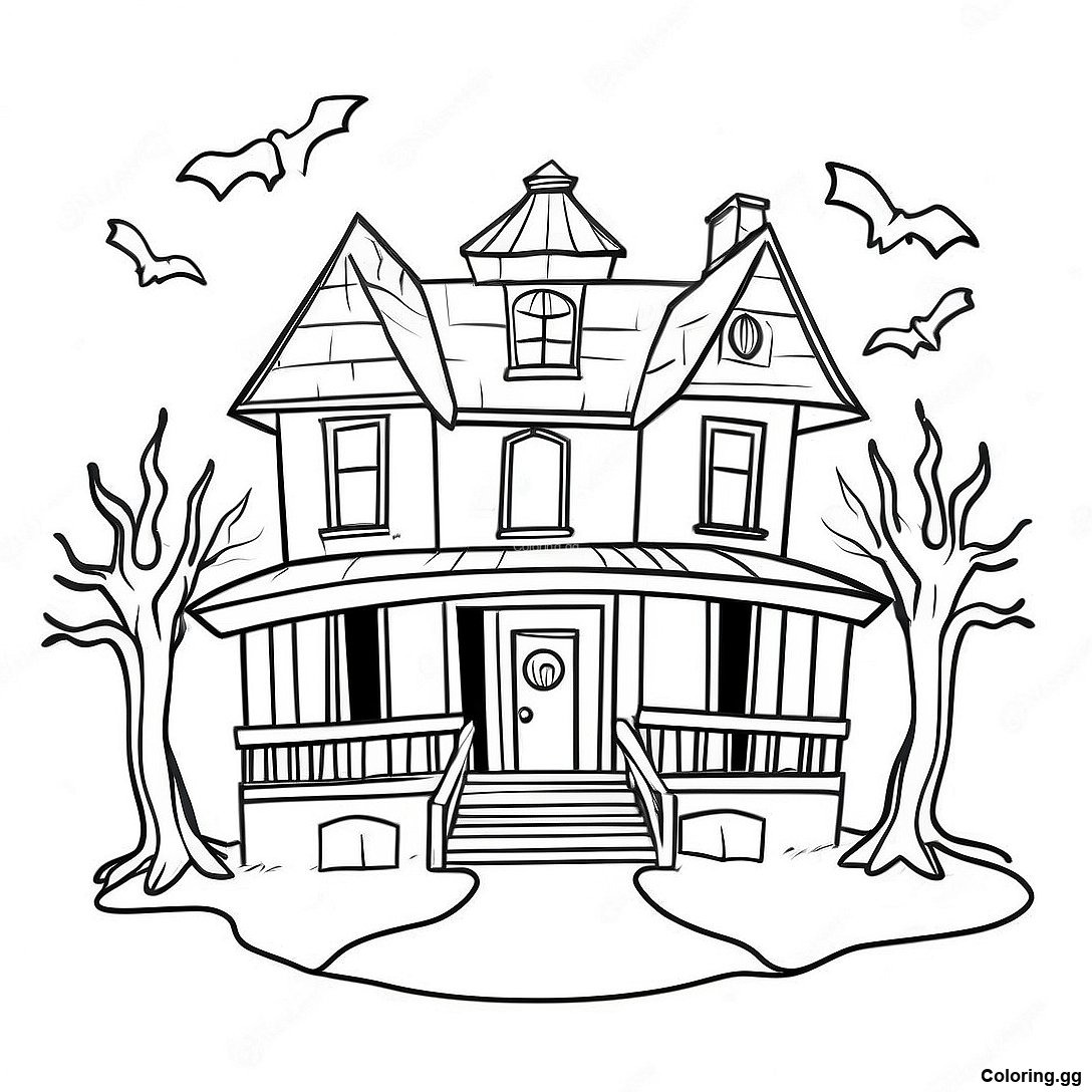ভুতুড়ে ভুতুড়ে বাড়ি রঙ করার পাতা এর মুদ্রণযোগ্য পিডিএফ ডাউনলোড করুন