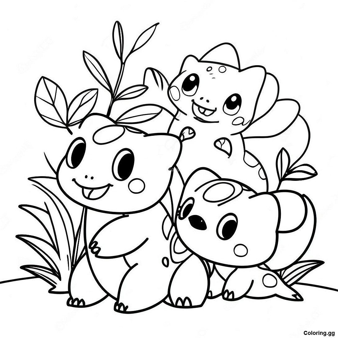 পিকাচু বন্ধুদের সাথে খেলছে রঙ করার পাতা