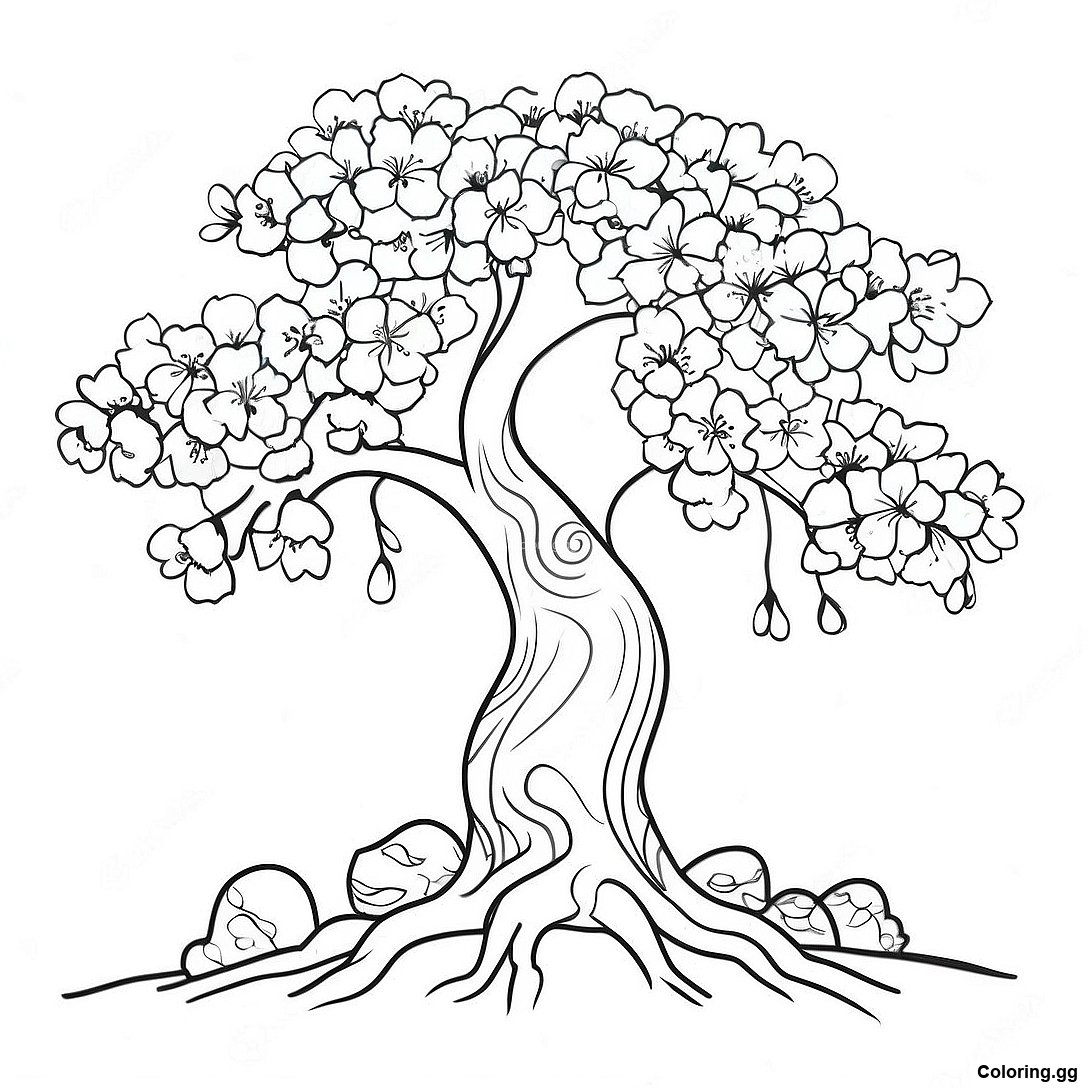চেরি ব্লসম গাছের রঙ করার পাতা এর মুদ্রণযোগ্য পিডিএফ ডাউনলোড করুন