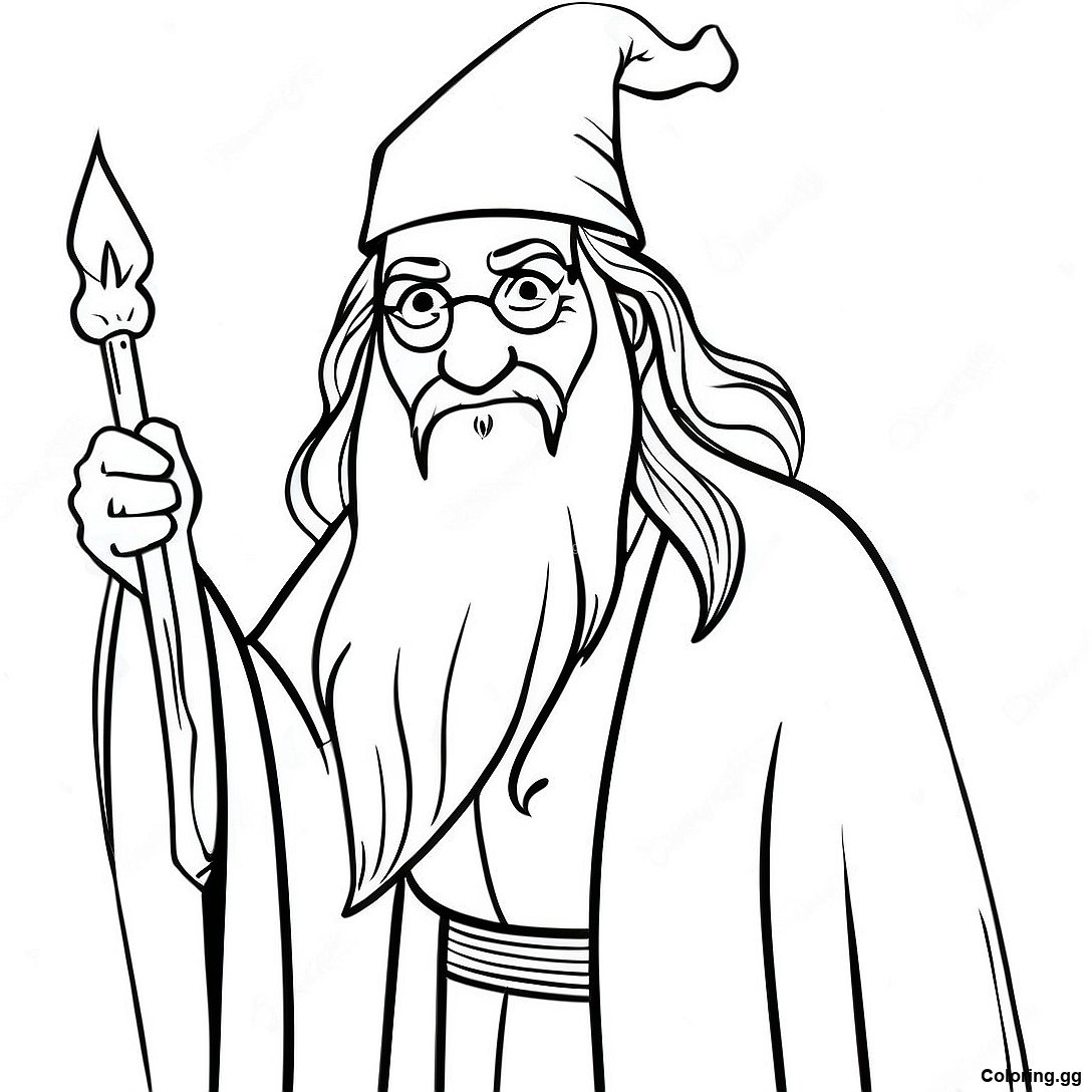 ডাম্বলডোর সহ জাদুর ছড়ি রঙ করার পাতা