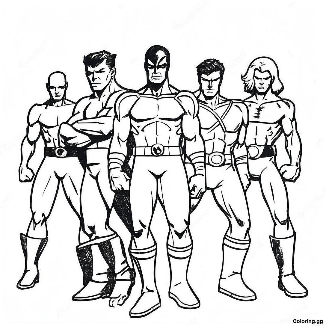 রঙিন সুপারহিরো টিম কর্মে রঙ করার পাতা