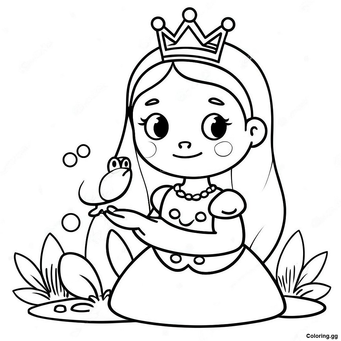 একটি ব্যাঙ ধরে থাকা আকর্ষণীয় রাজকন্যা রঙ করার পাতা এর মুদ্রণযোগ্য পিডিএফ ডাউনলোড করুন