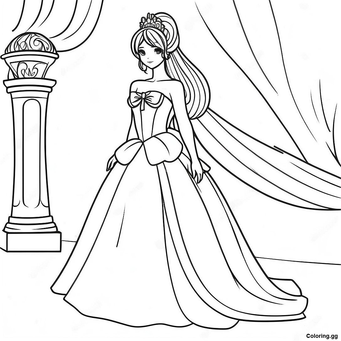 একটি গাউন পরিহিত এলিগেন্ট অ্যানিমে প্রিন্সেস রঙ করার পাতা