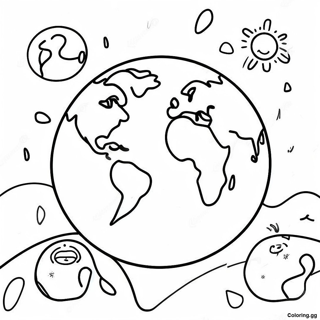 হাস্যোজ্জ্বল মুখসহ রঙিন পৃথিবী রঙ করার পাতা এর মুদ্রণযোগ্য পিডিএফ ডাউনলোড করুন