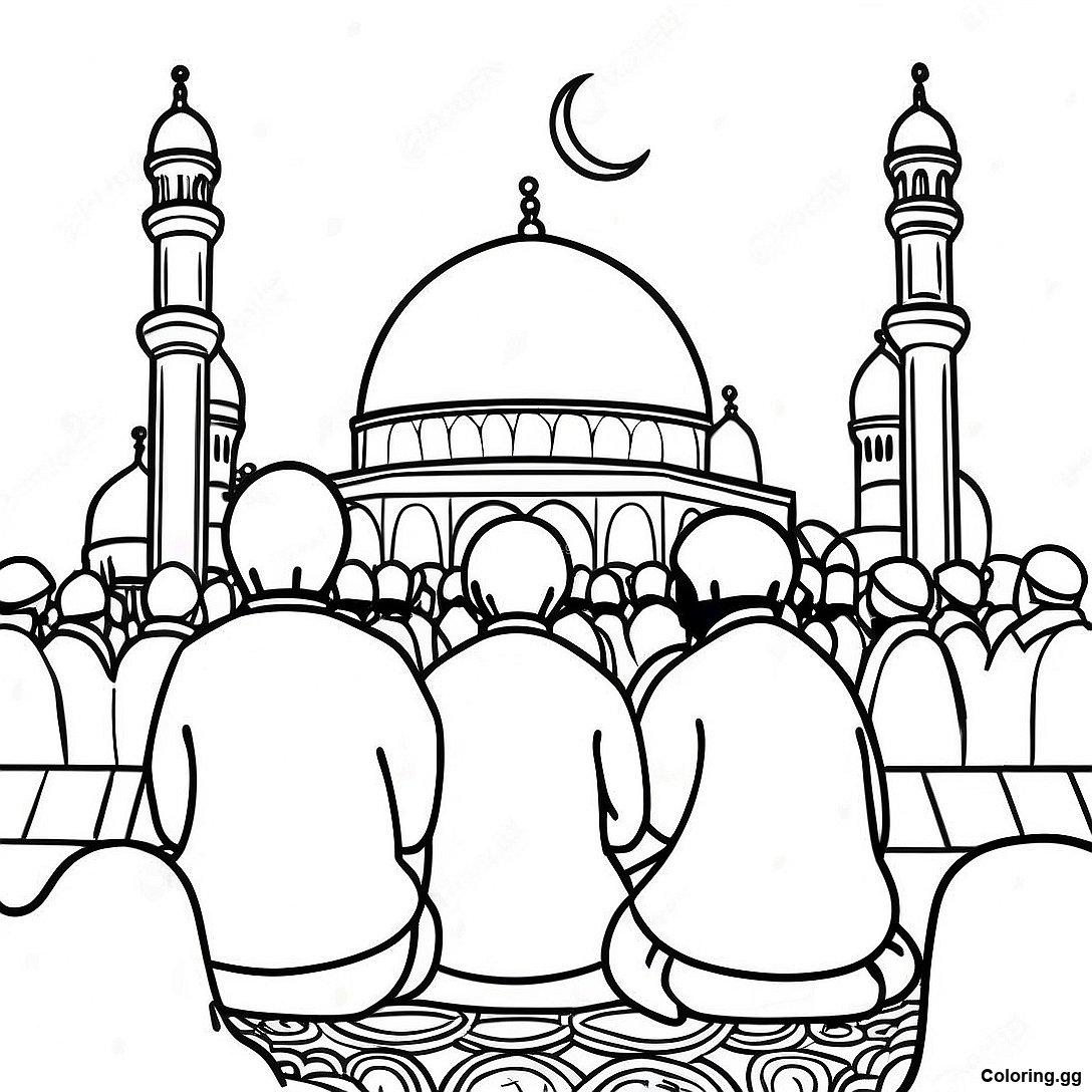 ঈদের নামাজের সমাবেশ রঙ করার পাতা এর মুদ্রণযোগ্য পিডিএফ ডাউনলোড করুন