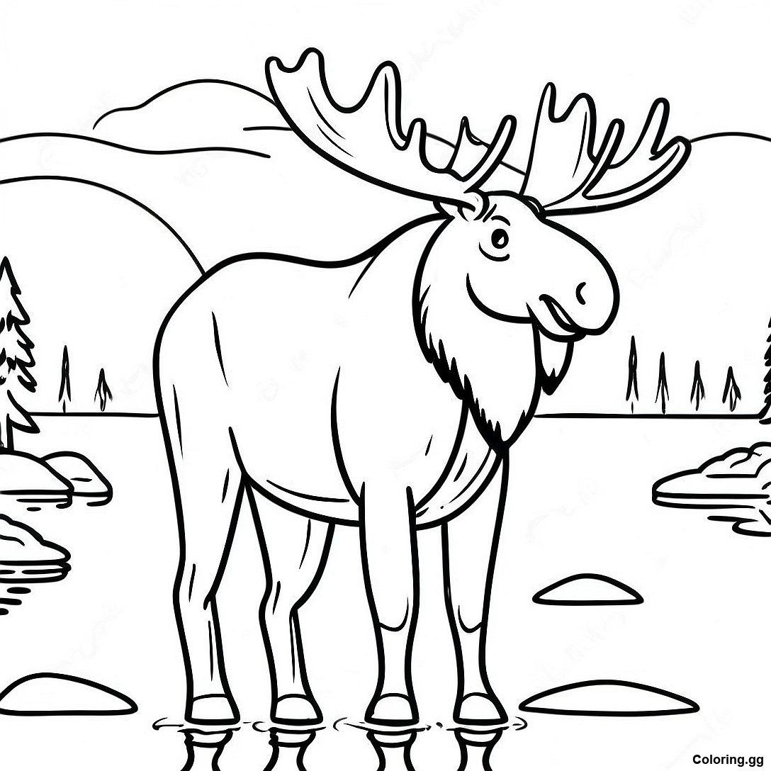 জলাশয়ের পাশে দাঁড়িয়ে থাকা বাস্তবসম্মত মুসে রঙ করার পাতা