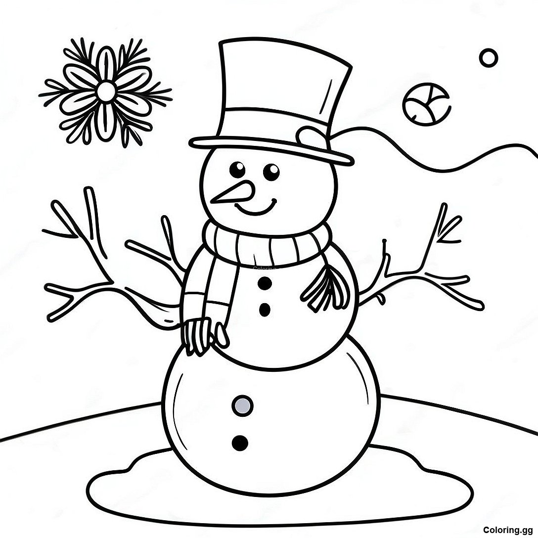 খুশি তুষারমানব স্কার্ফ সহ রঙ করার পাতা