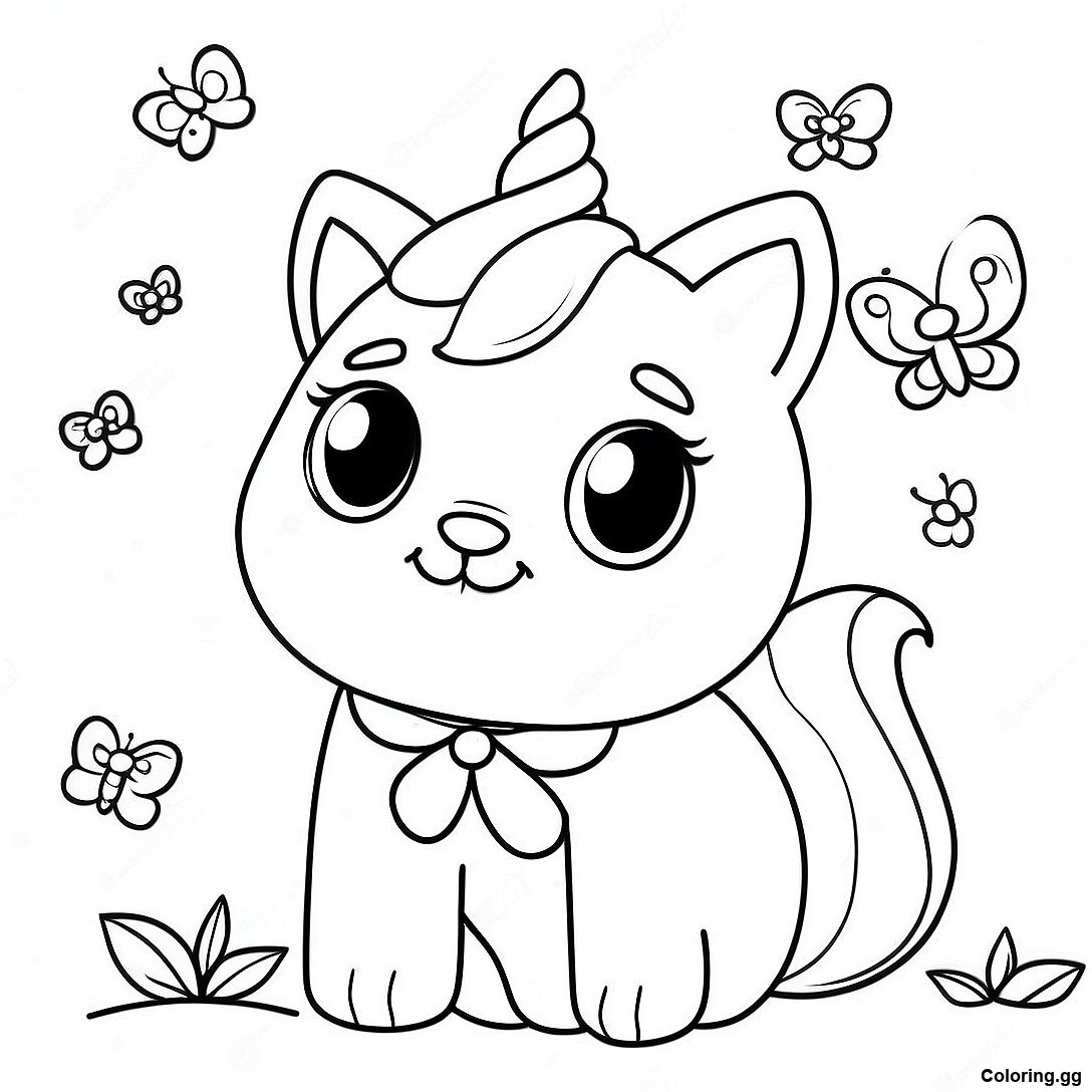 খেলাধুলার ইউনিকর্ন বিড়াল প্রজাপতির সঙ্গে রঙ করার পাতা