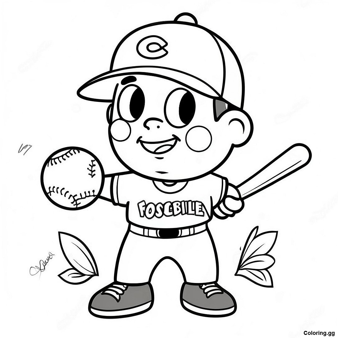 কিউট কার্টুন বেসবল রঙ করার পাতা এর মুদ্রণযোগ্য পিডিএফ ডাউনলোড করুন