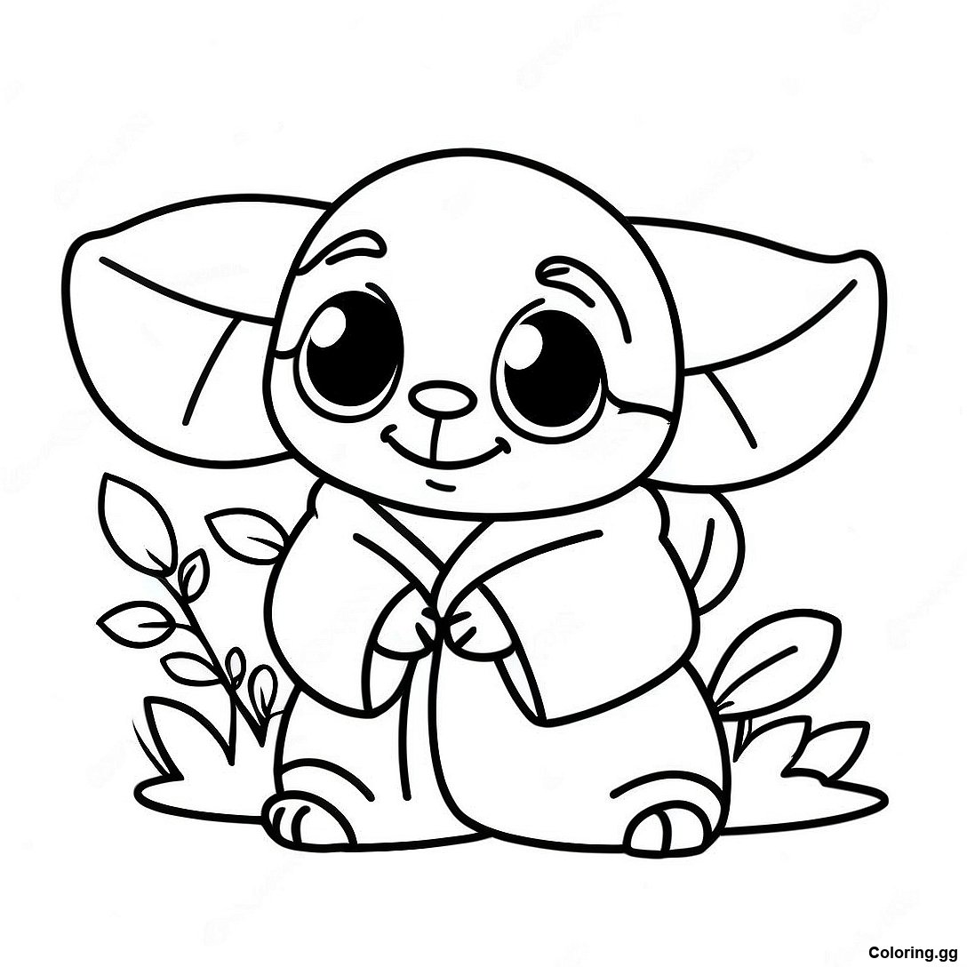 কিউট স্টিচ এবং বেবি ইয়োডা রঙ করার পাতা