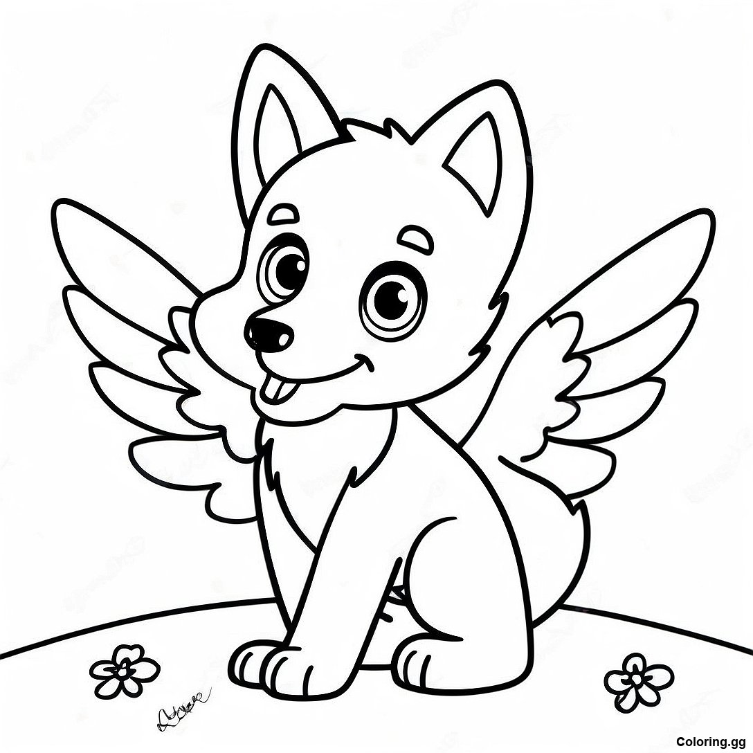 মিষ্টি বাচ্চা নেকড়ে রঙিন ডানার সাথে রঙ করার পাতা এর মুদ্রণযোগ্য পিডিএফ ডাউনলোড করুন