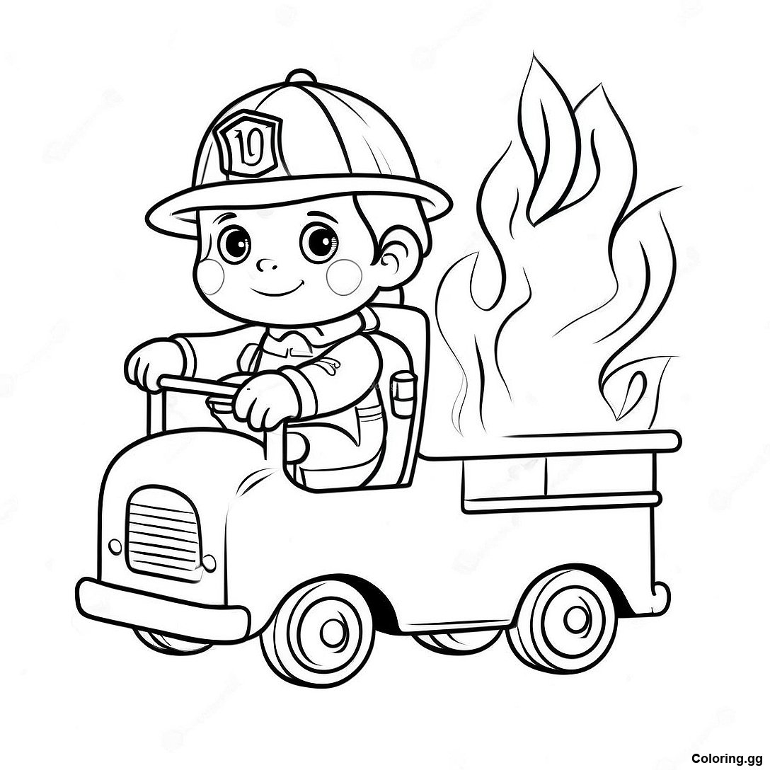 মিষ্টি দমকলকর্মী একটি দমকল ট্রাকে চড়ছে রঙ করার পাতা এর মুদ্রণযোগ্য পিডিএফ ডাউনলোড করুন