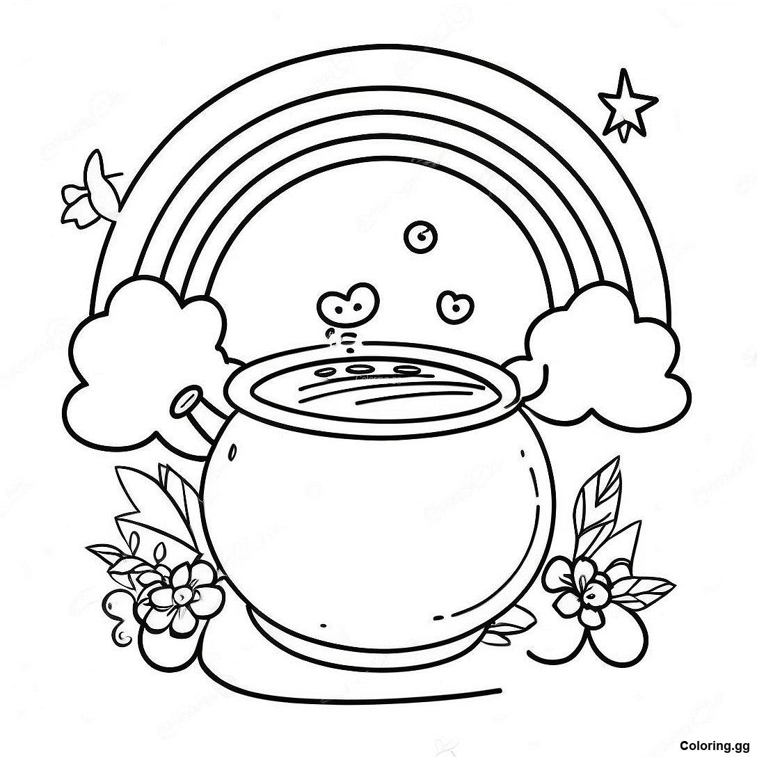 মজাদার রামধনু এবং সোনার হাঁড়ির রঙ করার পাতা এর মুদ্রণযোগ্য পিডিএফ ডাউনলোড করুন