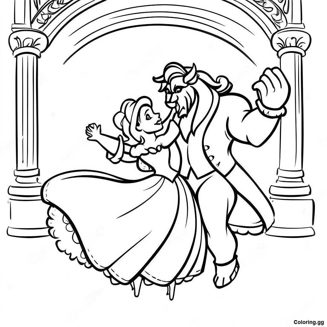 মোহনীয় বেল এবং পশু নাচের রঙ করার পাতা এর মুদ্রণযোগ্য পিডিএফ ডাউনলোড করুন