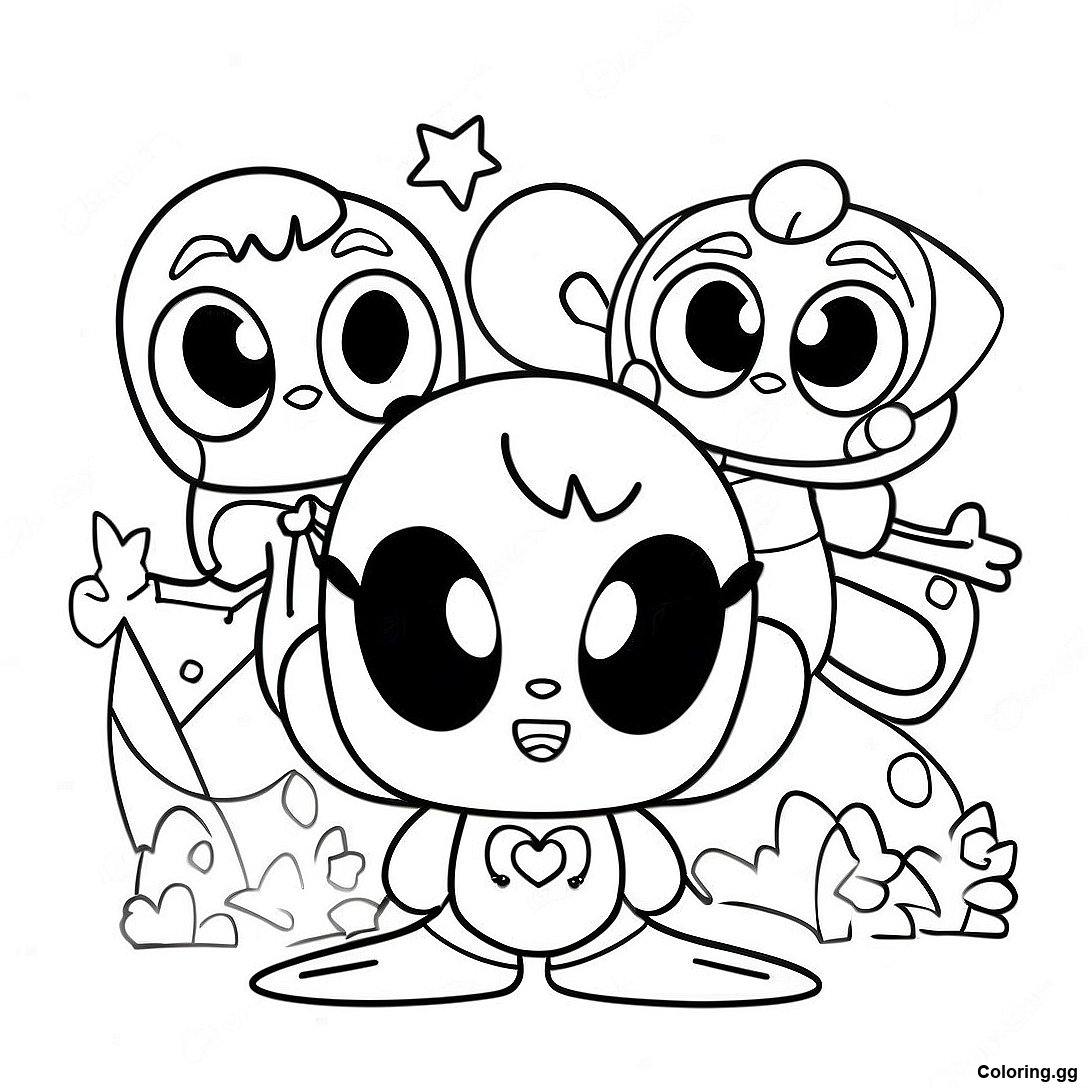 কোকোমেলন চরিত্রগুলি পার্কে খেলছে রঙ করার পাতা