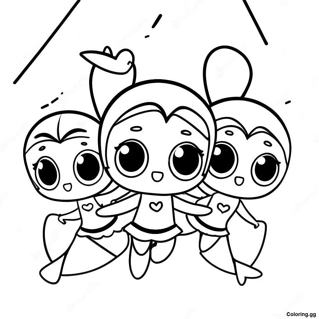 পাওয়ারপাফ গার্লস একসাথে উড়ছে রঙ করার পাতা এর মুদ্রণযোগ্য পিডিএফ ডাউনলোড করুন