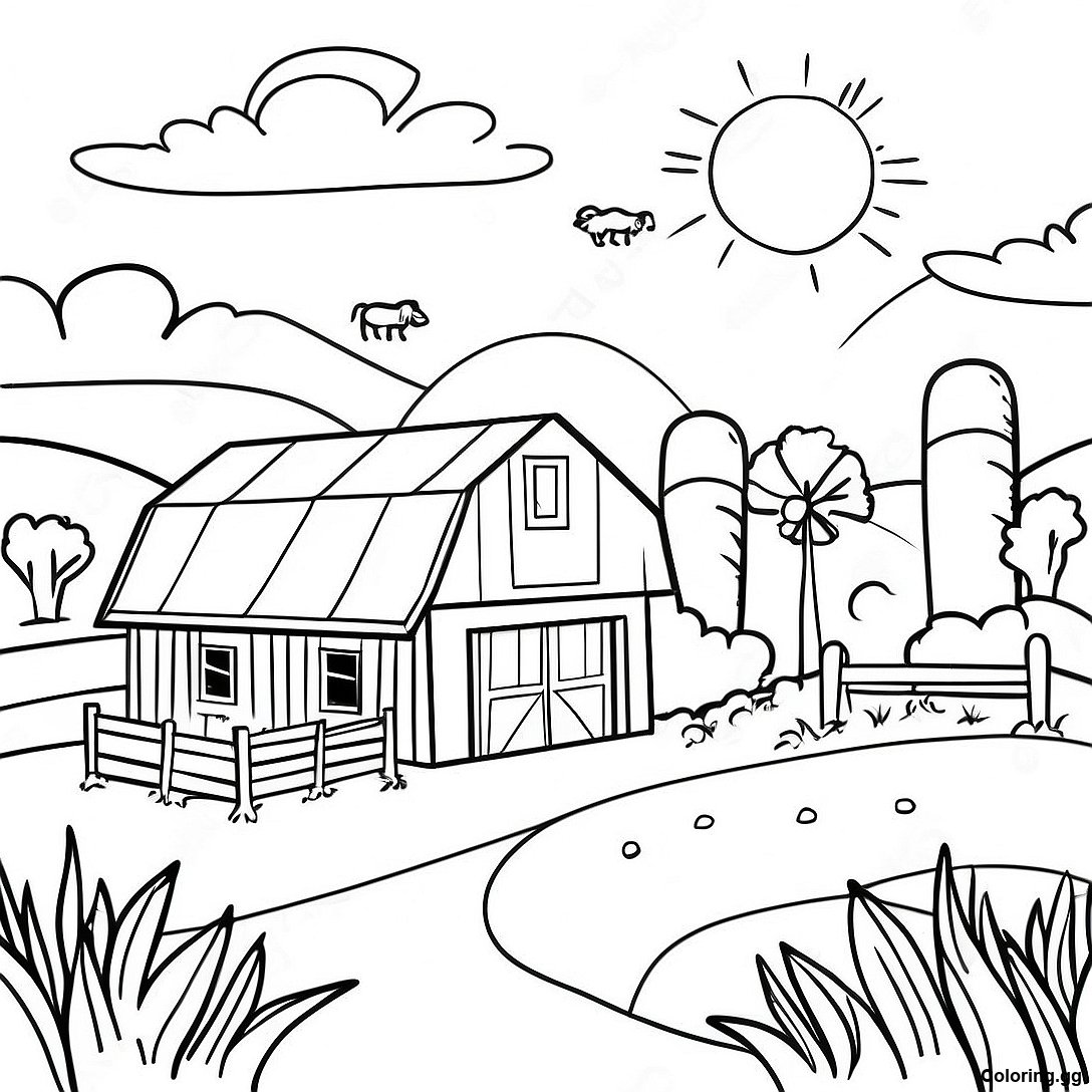 ফার্ম ল্যান্ডস্কেপ রঙ করার পাতা এর মুদ্রণযোগ্য পিডিএফ ডাউনলোড করুন