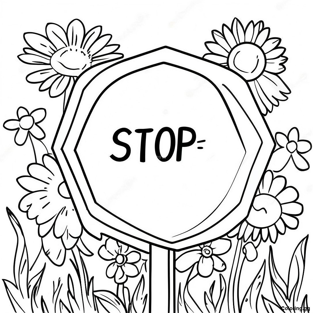 ফুল দ্বারা ঘেরা স্টপ সাইন রঙ করার পাতা