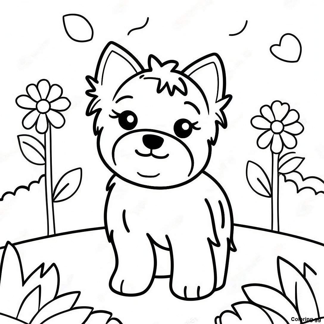 ফুলের বাগানে আদorable ইয়র্কি রঙ করার পাতা এর মুদ্রণযোগ্য পিডিএফ ডাউনলোড করুন