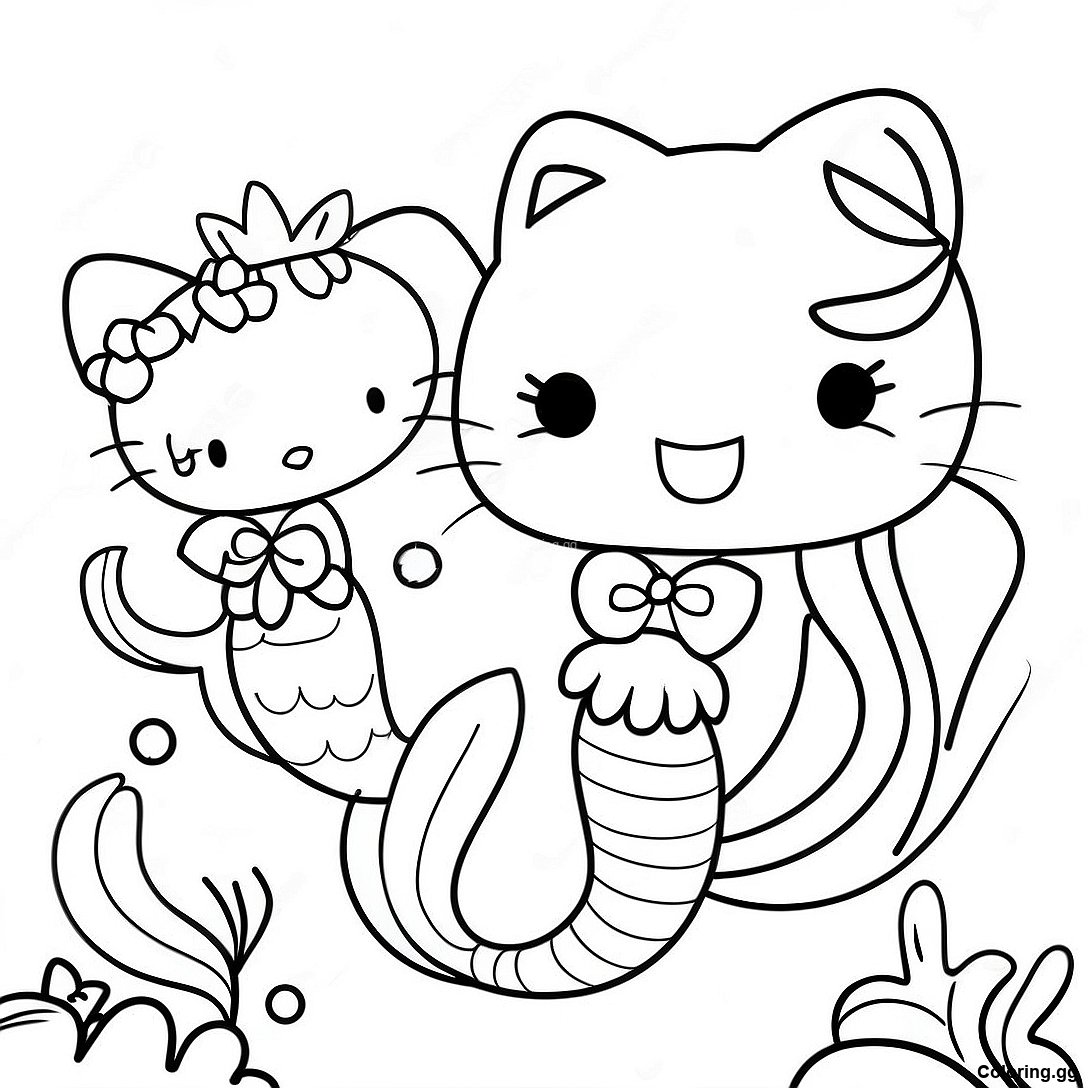 প্লে ফুল হ্যালো কিটি মেরমেইড উইথ ফ্রেন্ডস রঙ করার পাতা