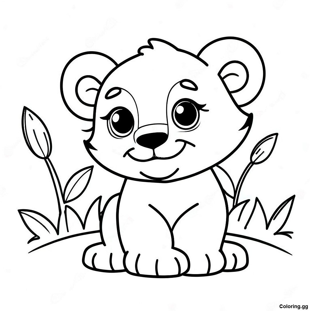 প्यারা বাচ্চা সিংহ খেলছে রঙ করার পাতা এর মুদ্রণযোগ্য পিডিএফ ডাউনলোড করুন