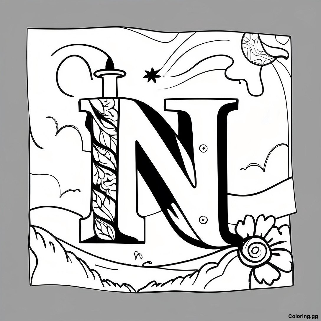 রাতের আকাশ অক্ষর এন রঙ করার পাতা এর মুদ্রণযোগ্য পিডিএফ ডাউনলোড করুন