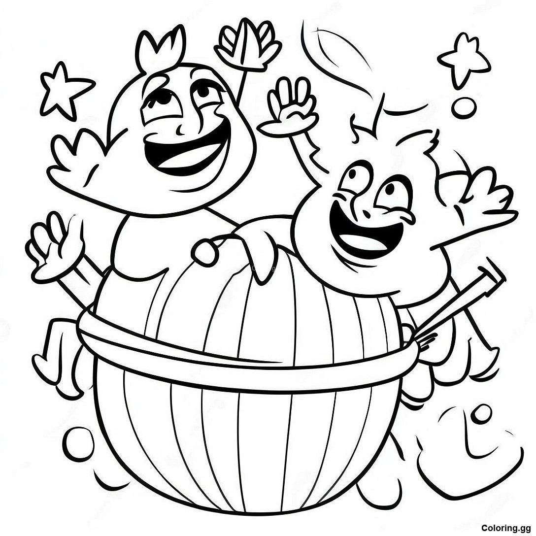 আনন্দিত শিশুদের বাস্কেটবল খেলতে রঙ করার পাতা