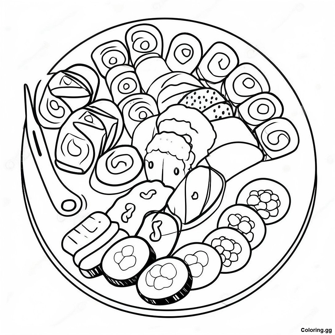রঙিন সুশি প্লেট রঙ করার পাতা এর মুদ্রণযোগ্য পিডিএফ ডাউনলোড করুন