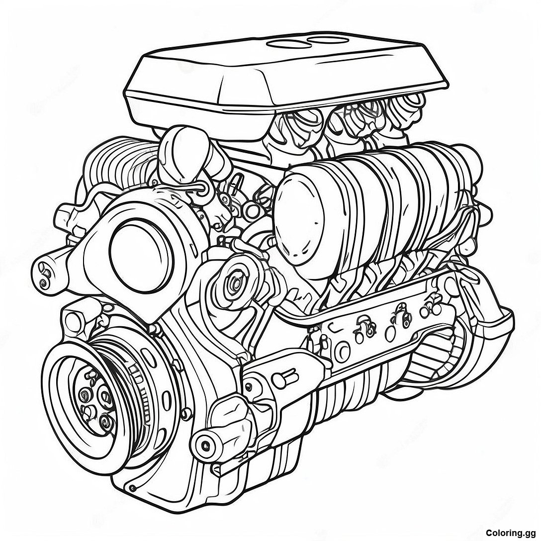 রঙিন টার্বো ইঞ্জিন রঙ করার পাতা এর মুদ্রণযোগ্য পিডিএফ ডাউনলোড করুন