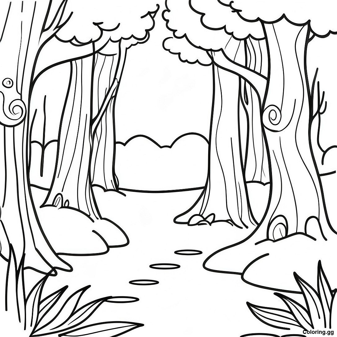 শান্ত বন দৃশ্য রঙ করার পাতা এর মুদ্রণযোগ্য পিডিএফ ডাউনলোড করুন