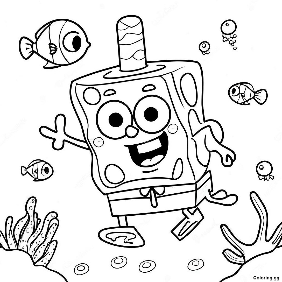 স্পঞ্জবব স্কয়ারপ্যান্টস জলের নিচে অ্যাডভেঞ্চার রঙ করার পাতা