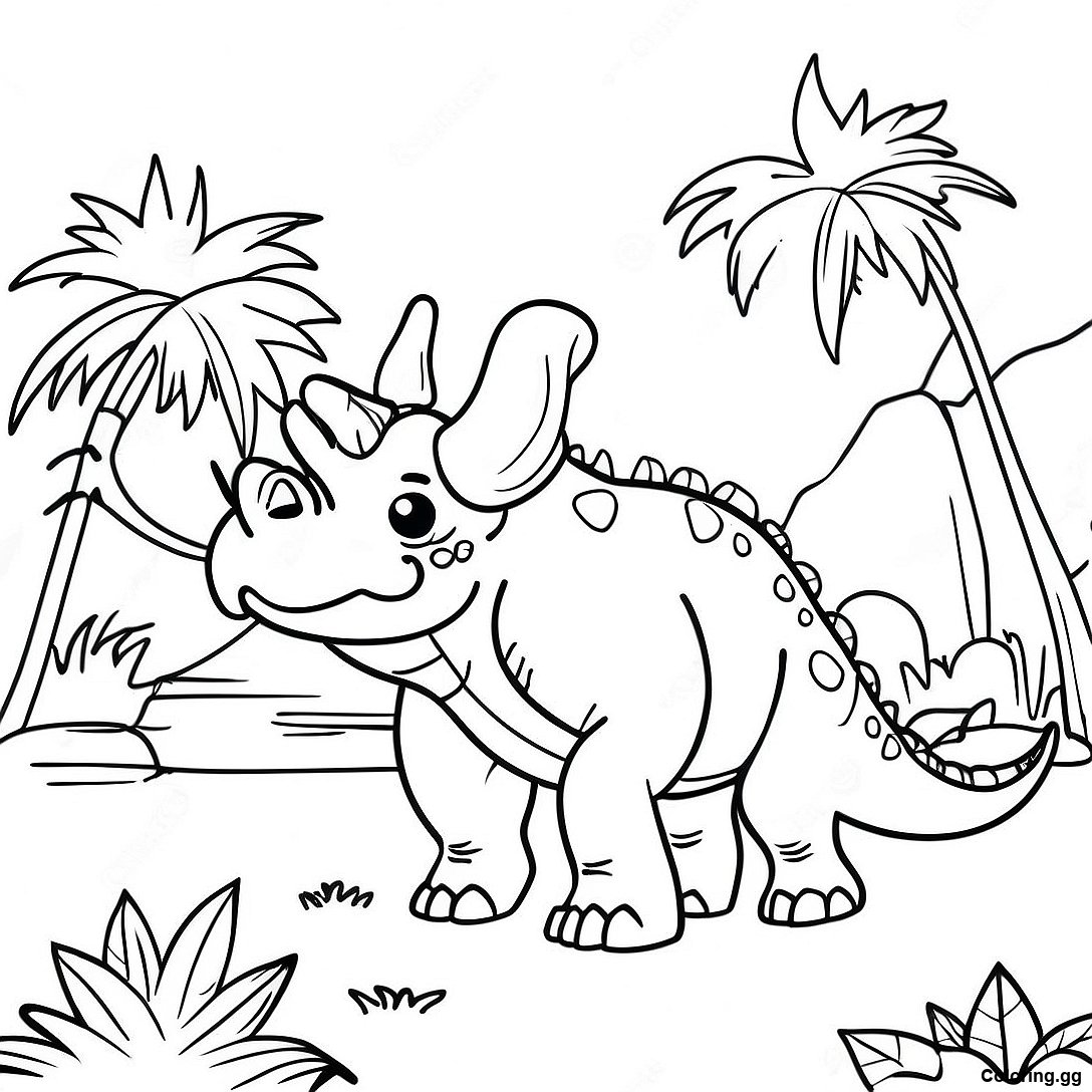 ট্রাইসেরাটপস ঘাস খাচ্ছে জুরাসিক পার্ক রঙ করার পাতা