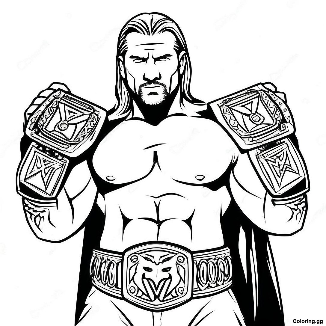 ট্রিপল এইচ দুটি বেল্ট ধরে আছে রঙ করার পাতা এর মুদ্রণযোগ্য পিডিএফ ডাউনলোড করুন