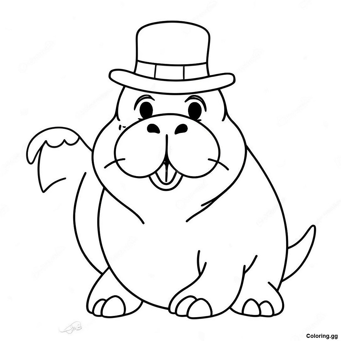 টুপির সাথে কার্টুন ওয়ালরাস রঙ করার পাতা এর মুদ্রণযোগ্য পিডিএফ ডাউনলোড করুন