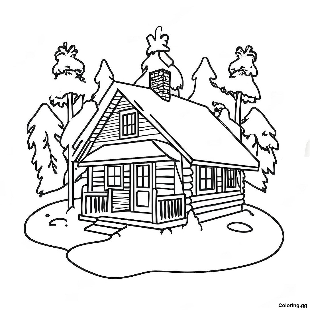 তুষারে আরামদায়ক কেবিন রঙ করার পাতা এর মুদ্রণযোগ্য পিডিএফ ডাউনলোড করুন