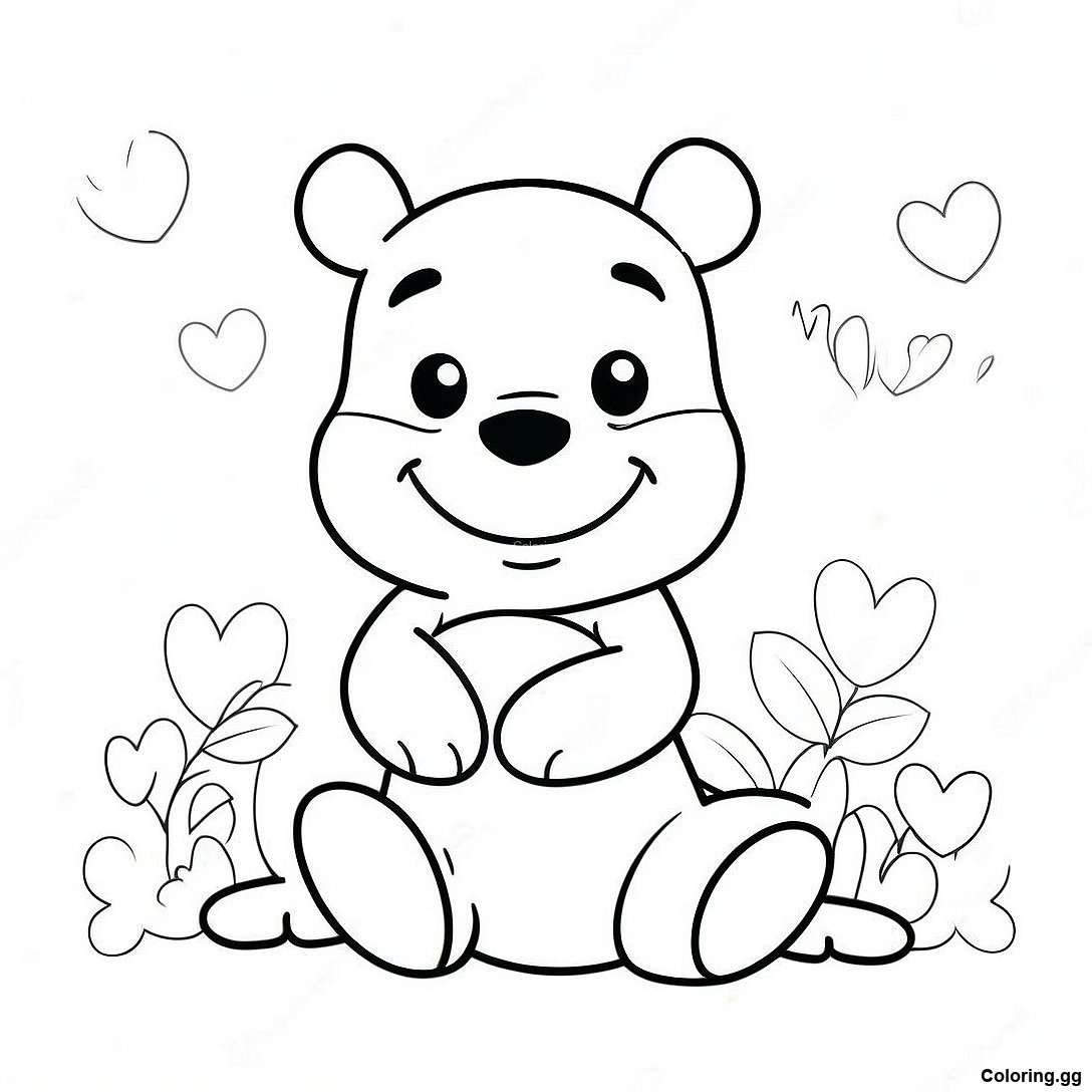 উইনি দ্য পুহ হৃদয়ের দ্বারা ঘেরা রঙ করার পাতা এর মুদ্রণযোগ্য পিডিএফ ডাউনলোড করুন